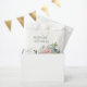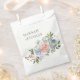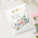 Elementos: Obra de arte floral de acuarela suave con flores silvestres en un atractivo swag. Fuentes clásicas serif con acentos de escritura en vivo. Colores: azul polvoriento, rubor, rosa, verde, rojo, turquesa, salvia. Temas: elegante, cottage, botánico, boho, jardín, primavera, verano, campo. Colección: Colección de Bodas Elegante Swag Floral de Azul Polvoriento y Rosa Tipo de producto: Bolsa de Favor