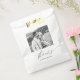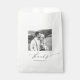 Sencillo y elegante boda en blanco y negro gracias bolsa de favores con una foto y un hermoso guión de caligrafía.