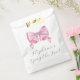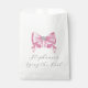 Estas bolsas de favores para desayuno nupcial presentan un diseño chic y glamuroso de lazo de seda rosa con piedras falsas y tipografía moderna. Puedes personalizar estas servilletas con el nombre de la novia. Estas servilletas forman parte de una colección que incluye productos para desayuno nupcial a juego.