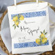 Coordina perfectamente tu tema de limón y baldosa azul con esta bolsa de favor personalizada súper linda. Edita el texto para cualquier evento haciendo clic en “personalizar esta plantilla”. Asegúrate de revisar el resto de la colección Limón y baldosa mediterránea de EmmyINK para papelería y decoración de fiesta personalizadas que coordinen.