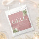 Es un bolso de chica para la ducha de bebé con una elegante tipografía verde sobre un polvoriento fondo rosa rosa. Diseñado por Thisisnotme©