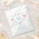 Estas bolsas favoritas del 4 de julio incluyen un escudo acuarela con un escudo patriótico azul y blanco claro con banderas estadounidenses y un arco azul. Puede personalizar con su monograma y nombre.