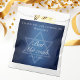 Bellos tonos profundos de azul oscuro crean una textura como el agua en estos personalizados formales del partido Bat Mitzvah favorece las bolsas. Elegante guión minimalista blanco con el nombre de su hija en la sutil Estrella de David para una celebración judía.