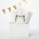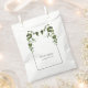 Este diseño presenta hojas rústicas de eucalipto. La vegetación del eucalipto se complementa con un elegante borde negro. Los colores verde polvorientos de la hoja de eucalipto crean un ambiente rústico de jardín de bosques de campo. Elegante diseño de bolsos de favoritas de boda con elementos modernos. También hay disponibles invitaciones de boda coincidentes y otros artículos de papelería.