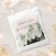 Elementos: escena de montaña acuarela con fuentes serif elegantes y contemporáneas. Colores: verde, verde cazador, verde de tierras altas, blanco, bruma blanca, gris, pizarra. Temas: moderno, boda al aire libre, montañas, rústico, arbolado, al aire libre, bosque, bosque, naturaleza, senderismo, montañas rocosas, sierra nevadas, montañas de crestas azules, montañas de humo. Colección: Colección de Bodas de Invierno Rústico de la Montaña Evergreen. Tipo de producto: Bolsa favorita