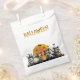 Los Gatitos De Halloween De Fantasma Negra A Rayas Negra Favorecen La Bolsa. Un gatito de Halloween adorable, blanco y negro, con una luna de otoño.