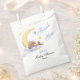 Favor de las bolsas para la ducha de bebé. Un lindo conejo dormido lujoso decorará las bolsas de regalo para sus vacaciones. Se puede reemplazar todo el texto