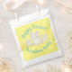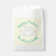 Happy Easter Cute personalizado ilustracion guión personalizado texto de la fiesta de Pascua a favor de las bolsas. Personalizable completo de texto de escritura verde azulado moderno sobre fondo de color amarillo para que pueda personalizarlo y hacerlo único. Estos bolsos de favores son geniales para galletas, dulces, dulces, dulces, caza de huevos en Pascua, regalos fiestas y favores para niños niños niños amigos de clase en el colegio.
