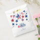 Esta brillante bolsa de favores presenta un divertido diseño del Día de la Independencia de estrellas decorativas rojas, blancas y azules en un elegante arco sobre una bella caligrafía que dice 'Feliz 4 de julio'. Perfecto para los fiestas de la cola y las barbacoas que celebran la ocasión. Busque ID1103 para ver todos los productos de coordinación con este diseño alegre.