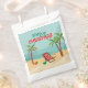 Un Navidad divertido y luminoso con un fondo de playa festivo.