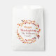Esta hermosa bolsa de favores de la fiesta feliz de Acción de Gracias incluye una corona de bonito de hojas marrones, naranjas y rojas alrededor de tu texto personalizado. Personalizar estas bolsas de temporada con tu apellido y año en los colores de otoño.