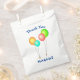 Fiesta Balloons Niños Cumpleaños Gracias Favor Bag. Bonito bolso para fiestas de cumpleaños con cuatro globos coloridos de colores rojo, verde, azul y naranja. Personalice la bolsa con el nombre de su hijo y haga su propia bolsa de cumpleaños para darle las gracias a sus invitados.