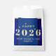 Feliz Año Nuevo / fiesta de Año Nuevo bolsa de favores con hermosos colores y estrellas azules. Ideal para los que buscan suministros para fiestas de vacaciones y quieren usar bolsas de favores para celebrar el año nuevo. La parte delantera de los bolsos de bienvenida está decorada con bonitos colores azules y dorados. texto personalizado en la parte delantera. Usa la plantilla para crear tus propios bolsos de favoritas para tu personalizado Feliz Año Nuevo / Nochevieja.