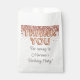 Rosa de la fiesta de cumpleaños de oro favorece la bolsa de favores para una fiesta de cumpleaños de purpurina chica con el tema fiesta rosa de diseño impreso en papel de textura blanca.