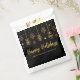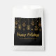 Personaliza estas elegantes bolsas de regalos para una fiesta corporativa de vacaciones con una escritura cursiva dorada debajo de un dibujo de adornos navideños dorados. La tipografía elegante en una moderna bolsa de regalos negra añade un toque de clase a una fiesta de Navidad corporativa personalizada. Personaliza con los saludos de tu empresa.