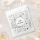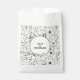 Dibujos modernos monocromáticos de flores en blanco y negro. Magnífica coordinación de bolsos de favores con texto personalizado para coincidir con tu celebración.