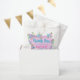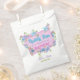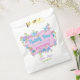 Elegante fiesta de cumpleaños "Gracias" bolsa de favores con flores de color rosa, azul y violeta y remolinos verdes enmarcando un trozo de pergamino para tu texto. Diseño lindo, colorido y jovial, perfecto para la celebración de cumpleaños con temática floral primavera/verano.