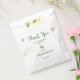 Boda temática de la decoración artesanal. Gracias a la bolsa con abejas y una flor sobre fondo blanco con letra manuscrita verde.