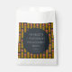Estas bolsas personalizadas para los regalos de la fiesta de compromiso son una forma encantadora de agradecer a los invitados por celebrar una ocasión tan especial. El diseño presenta un llamativo fondo oscuro con un borde floral geométrico y audaz en tonos cálidos dorados, rojos y terrosos, perfecto para agregar un toque moderno y rústico a su celebración. Personalizables con nombres y fecha, estas bolsas son ideales para contener dulces, pequeños recuerdos o tokens de aprecio para sus seres queridos. Son el toque final perfecto para una fiesta de compromiso acogedora, dejando a los invitados con un recuerdo sincero del día.