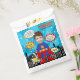 Una fiesta de cumpleaños temática de superhéroes es una manera popular y emocionante de celebrar el día especial de un niño. Es una manera divertida de alentar la imaginación y la creatividad mientras se celebra el cumpleaños de un niño. Este diseño atrevido y de colores brillantes, con temática de superhéroes en el libro de historietas, de color azul, es una gran manera de dar vida a la emoción de las historietas y los superhéroes para los jóvenes fans. Añade una foto recortada del chico de cumpleaños para crear tus exclusivos suministros personalizados para fiestas de superhéroes.
