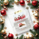 Moderno ilustracion de moda Navidades de vacaciones con un fondo rústico de madera y un guión de tipografía roja "Feliz Navidad" en el texto y copos de nieve y bokeh decorativos. Cambiar fácilmente las dos fotos de muestra con las propias.