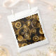 Sin soldadura, metalizado, latón, engranajes dorados sobre un fondo oscuro y oxidado. Estilo Steampunk.