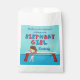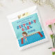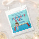 Esta bonita bolsa de chicas para fiestas de cumpleaños de gimnasia tiene un chica de gimnastas de bonito parado frente a una viga. Lleva puesto una leotard roja y sonríe para invitar a la gente a su fiesta divertida de niños en el gimnasio local. Hermoso regalo azul personalizado para tu niñita.