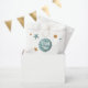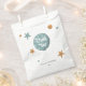 Complementa los recuerdos de cumpleaños de tu niño con estas bonitas bolsas de agradecimiento. Los colores azul y naranja del globo y las estrellas son tranquilos y hermosos. Personaliza el texto con el tuyo. Ilustrado y diseñado por Patricia Alvarez.