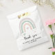 Bolso de favores de la fiesta de la ducha de bebé Boho que incluye una hermosa acuarela abstracta de un arcoiris verde sabio, naranja y lavanda con corazones y "gracias" en un guión elegante. Personalice el nombre y la fecha de ducha de la futura madre.