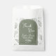 Estas Bolsas de Favor con Dibujos de Conchas de Mar en Verde Sage de Agradecimiento presentan un fondo sereno de color verde sage decorado con dibujos caprichosos de conchas marinas, estrellas de mar, corazones y destellos para un ambiente costero suave y elegante. En la parte delantera, un arco verde sage delineado con un fino arco interior blanco enmarca su mensaje personalizado. En el interior, "Gracias" está en la parte superior, seguido de texto editable para el nombre de la novia, "Despedida de Soltera", una ilustración de una concha marina dulce y la fecha del evento. Ideal para contener regalos de despedida de soltera, golosinas, pequeños obsequios o detalles de bienvenida. Todos los colores y textos son personalizables para adaptarse a su tema.