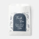 Estas Bolsas de Favoritos con Doodles de Conchas de Mar en Azul Marino Gracias presentan un rico fondo azul marino adornado con doodles caprichosos de conchas marinas, estrellas de mar, corazones y destellos para un toque costero audaz. En el centro, un arco azul marino delineado con un fino arco interior blanco muestra su texto editable. Dentro del arco, "Gracias" está escrito en la parte superior, con espacio personalizable debajo para el nombre de la novia, "Despedida de Soltera", un pequeño doodle de concha marina y la fecha. Perfecto para regalos, obsequios, golosinas de fiesta y despedidas de soltera con tema náutico. Todo el texto y los colores son totalmente editables para que coincidan con su evento inspirado en el océano.