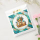 Una linda fiesta de cumpleaños de un niño con temática de oro y verde azulado dragón de chibi gracias bolsas de favores.