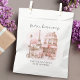 Para los futuros padres/madres. La vida en París inspiró la calle Paris Café con la Torre Eiffel al fondo, la ducha bebé bolso de agradecimiento. Coloca algunos dulces de inspiración francesa en el interior de la mochila y regala a los invitados como agradecimiento por asistir. Un diseño de ensueño, romántico y caprichoso. Personalice con la inclusión de su elección de texto en la parte inferior del diseño. Parte de la colección "Bonjour Bébé" de duchas para bebés.