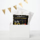 Rock and roll fiesta de cumpleaños número 50 gracias a los bolsos de favores con guitarras psicodélicas divertidas, notas musicales y tipografía de oro genial sobre negro. 50 Rocks para el marido, novio, hermano, pareja o padre de rockstar con esta singular guitarra eléctrica de color, guitarra semiacústica y ilustraciones de guitarra acústica en colores vivos y brillantes. Personalice esta plantilla fácil de usar para crear la perfecta bolsa de agradecimiento con el tema fiesta para dar las gracias a sus invitados por celebrar cincuenta en estilo rock and roll. Ideal para un guitarrista, músico, banda en vivo y amantes de la música. Este moderno diseño musical de instrumentos musicales celebra la energía musical de este maravilloso instrumento musical y es la manera perfecta de rodar una celebración de 50 años. Pintura original de la artista Catherine Sweetman
