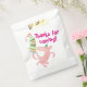 Un cerdo feliz en la fiesta de cumpleaños favorece las bolsas. Utilice "Personalice esta plantilla" para modificar el texto "¡Gracias por venir!" y crear accesorios fiestas únicos y personalizados. Presenta un porcino alegre, bajo una torta de capa que cuelga con azotes de hielo verde y coronados con velas rosas.