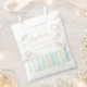 Grad club beach party with cabana stripes in shades of mint green, coastal blue and sandy brown with seashells.