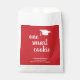 Mochila moderna de promoción de graduación con un diseño simple y lindo con una tapa de grado y "una galleta inteligente" en una escritura gruesa con el nombre del graduado, el año de clase y el nombre de la escuela en blanco sobre un fondo rojo. El color de fondo puede cambiarse a cualquier color que desee. Estos bolsos son perfectos para un chica graduado y son una excelente manera de añadir un toque personal a los favores de tu fiesta.