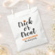 Estas espantosas y lindas bolsas de favores de Halloween presentan "Truco o trato" en escritura negra moderna con acento de calabaza de jack o'lantern naranja.