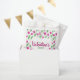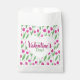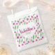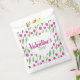 Happy Valentine's day favor bag decorated with pink tulip pattern on white background.