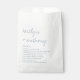Celebra con estilo estas modernas y muy modernas bolsas de favoritas de boda. El diseño es fácil de personalizar con la redacción de tu evento especial y tus invitados estarán encantados cuando vean estas fabulosas bolsas de favores. Se pueden encontrar elementos bodas coincidentes en la colección.
