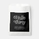 Envíe a sus huéspedes a casa con un elegante toque usando esta bolsa de favores de la fiesta Hello Thirty Retro 30th Birthday, que presenta una audaz tipografía retro en un elegante diseño en blanco y negro. Perfecto para realizar golosinas, pequeños regalos, o tokens de agradecimiento, esta bolsa de favores de cumpleaños número 30 de personalizable le da un toque de moda al final de su celebración. Ideal para cenas elegantes, noches de cóctel o animadas treinta y animadas reuniones, estas retro bolsitas de fiesta de 30 años pueden ser personalizadas con tu nombre, fecha de evento o mensaje especial, haciéndolas una parte memorable de tu celebración.