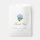 Sencillo y clásico elegante, estas bolsas de favores matrimoniales presentan un texto fácil de personalizar y una flor de corte simple de una horangea azul para convertirla en el toque final perfecto para un gran romance milenario.