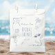 Estas bolsas de favores para despedida de soltera con ilustraciones de doodle de playa dibujadas a mano presentan un fondo blanco limpio decorado con doodles de color azul polvoriento de la costa: olas, conchas marinas, estrellas de mar, palmeras, gafas de sol y acentos garabateados lindos. Centrado en la bolsa hay texto personalizable que dice "Despedida de Soltera", con un espacio para el nombre de la novia arriba y la fecha del evento abajo. Todo el diseño es editable, lo que te permite combinar los colores y la redacción con tu despedida de soltera costera perfectamente, mientras les das a los invitados una presentación de favor playera con estilo.