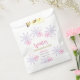 Temática de Winter Wonderland Baby ducha personalizado bolsa de favores. El esquema de color es muy ondulado en rosa y morado con un diseño de texto dorado/purpurina. Etiquetas de regalo para bebés rosas y moradas con bonitos copos de nieve. Ilustracion digital de Kristine Lee. Para obtener más información, visite www.kristineleedesigns.com