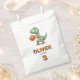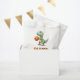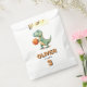 Esta bolsa de favores personalizada incluye un lindo dinosaurio T-rex, jugador de baloncesto.