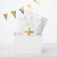 Para que el kit de emergencia (también conocido como Hangover Kit) ponga en la bolsa de bienvenida de la boda de destino, con algo de medicina dentro. Tiene una falsa cruz de Relieve metalizado de oro en el centro y un texto abovedado haciendo un círculo alrededor de ella. Encima está el mensaje "En la enfermedad y en la salud" y debajo están los nombres de la novia y el novio y la fecha. El texto está en pequeñas gorras de oro.