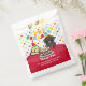 Bolsa de Favor de Cumpleaños de los labradores negros y amarillos. Personalizado caprichosa y graciosa de Labrador Recuperador creada por Naomi Ochiai de Japón. Dos cachorros de Labrador están celebrando su cumpleaños!! El cachorro del laboratorio amarillo y el cachorro del laboratorio negro están sentados en la mesa roja en el colorido fondo de los puntos polka.