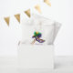 El paquete de 50 bolsos de papel blanco favorece las bolsas con una imagen de una hermosa máscara de satén morado, verde y dorado sobre un palo con plumas y cintas coordinadoras, y el texto "Laissez Les Bon Temps Rouler" (Dejen que los buenos tiempos se roden en francés), en escritura violeta francesa. Vea la etiqueta favorita, pegatina redondo y pegatina vinílico de corte personalizado. Ver toda la colección Mardi Gras Favor Bag en los TOUCHES ESPECIALES | Sección de favoritos de partido.
