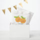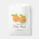Pequeñas cortinas están en el camino de la ducha para bebés con adorables pequeños naranjas de clementina colocados en un fondo rosa claro. Visita nuestra tienda para ver nuestra adorable colección de diseño de pequeñas ciudades.