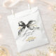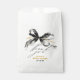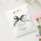 Bolsas de favores de lazo negro y dorado caprichosas con letra manuscrita sofisticada — perfectas para cualquier fiesta.